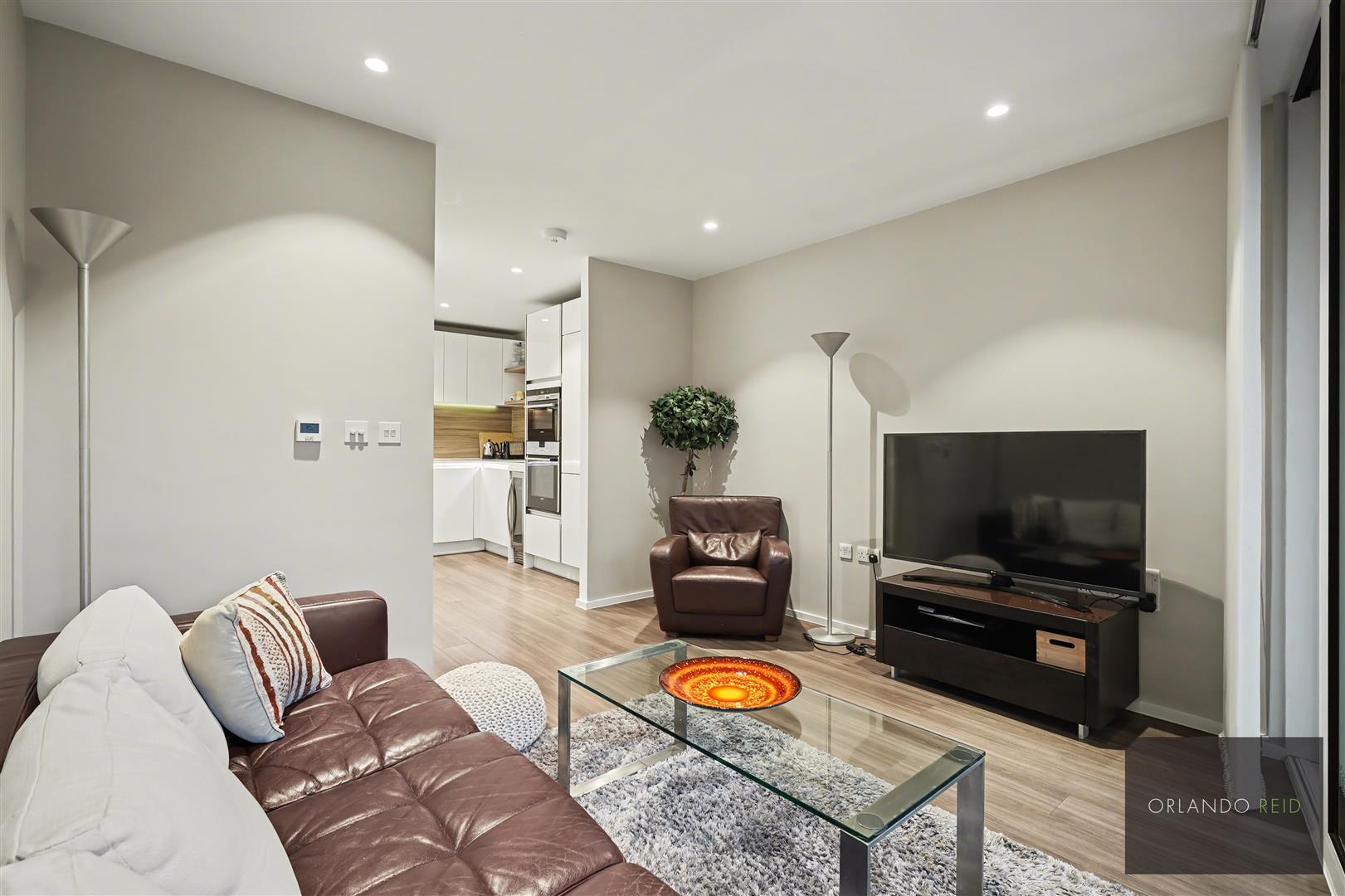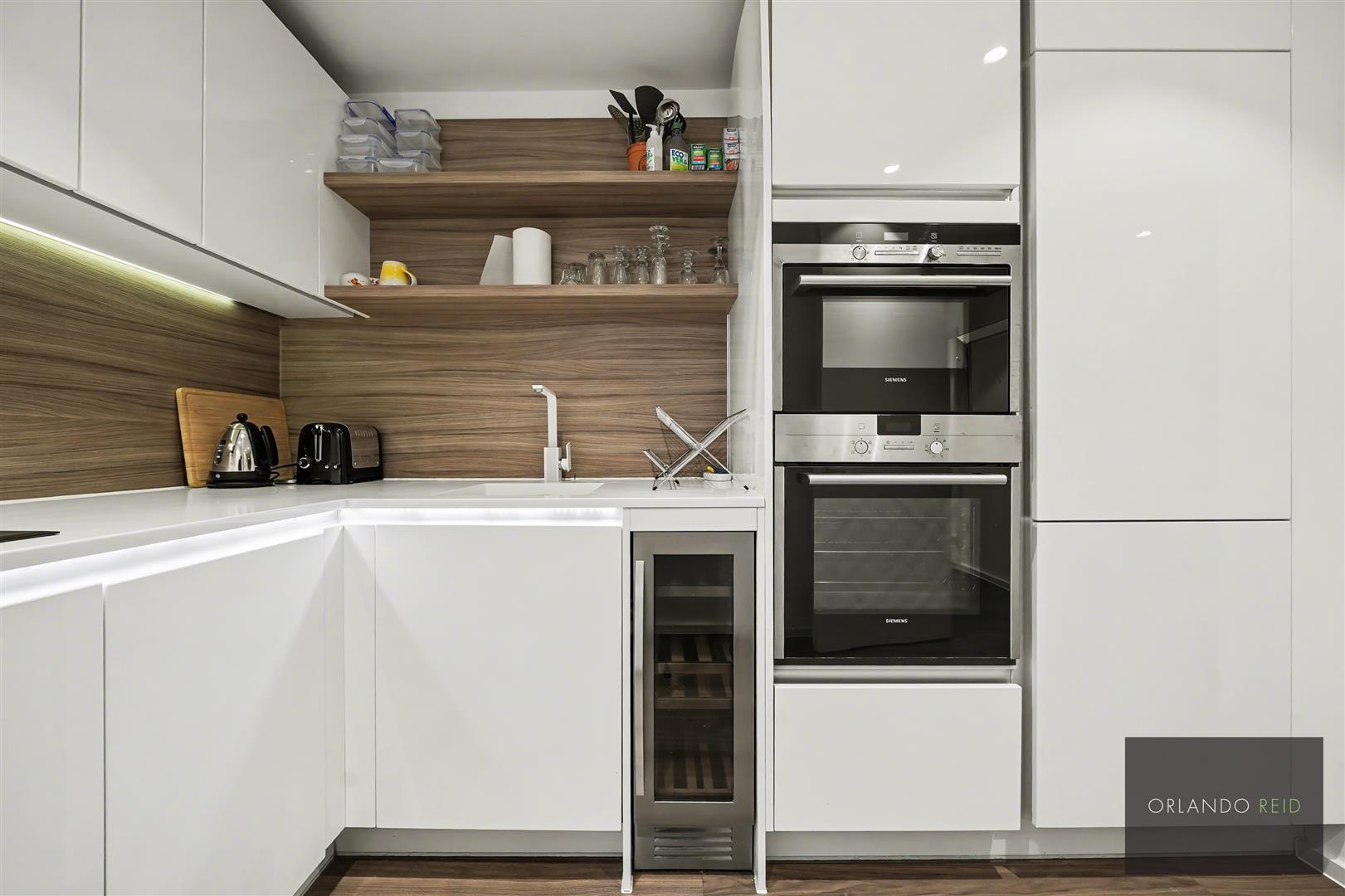 The property includes a spacious balcony space, 24-hour concierge and access to beautiful green communal gardens within the development. The flat has fitted wardrobes with sliding doors in each bedroom. The open plan kitchen is immaculately finished.