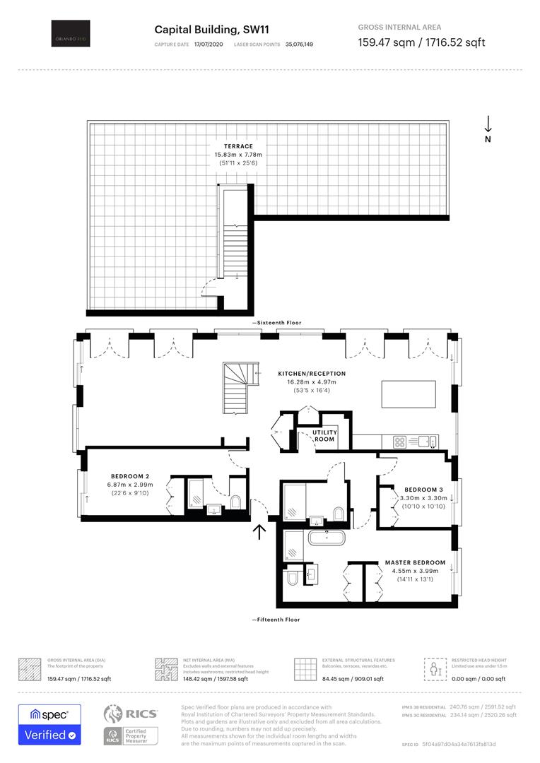 A uniquely designed 3 bedroom / 3 bathroom apartment with an incredible and large private roof terrace. The property is comprised of a open plan living room / kitchen with has an abundance of natural light and floor to ceiling windows. Accessed via the living area is the fantastic private roof terrace. two of the bedrooms benefit from en-suite bathrooms and there is also the family bathroom. All three bedrooms have built in fitted wardrobes. There is also a utility room.