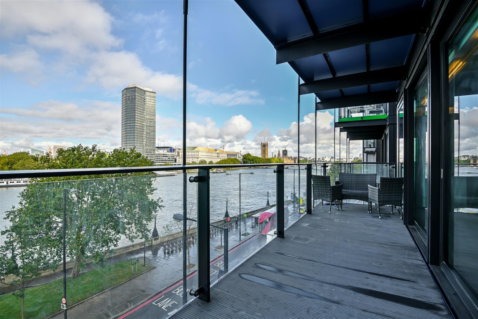 Occupying a sought after location on the Albert Embankment. This stunning apartment offers amazing views of The River Thames and across to The Palace of Westminster and Big Ben. Situated on the 1st floor of the Merano Residence. The apartment is comprised of a bright and airy living room featuring floor to ceiling windows with a balcony. The fitted kitchen is large and has a river facing balcony to enjoy cooking on a summers day. The bedrooms have fitted wardrobes. The master bedroom further benefits from an en-suite bathroom.