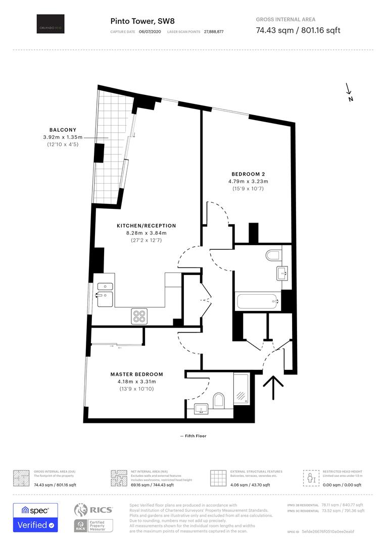 A stunning two bedroom apartment located on the 5th floor of a secure, modern, serviced building. With two bathrooms, the apartment located in Pinto Tower, in Nine Elms Point.