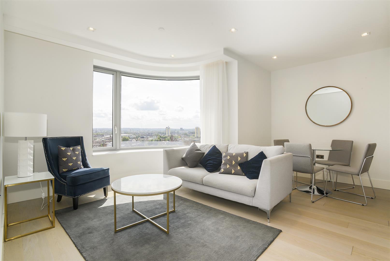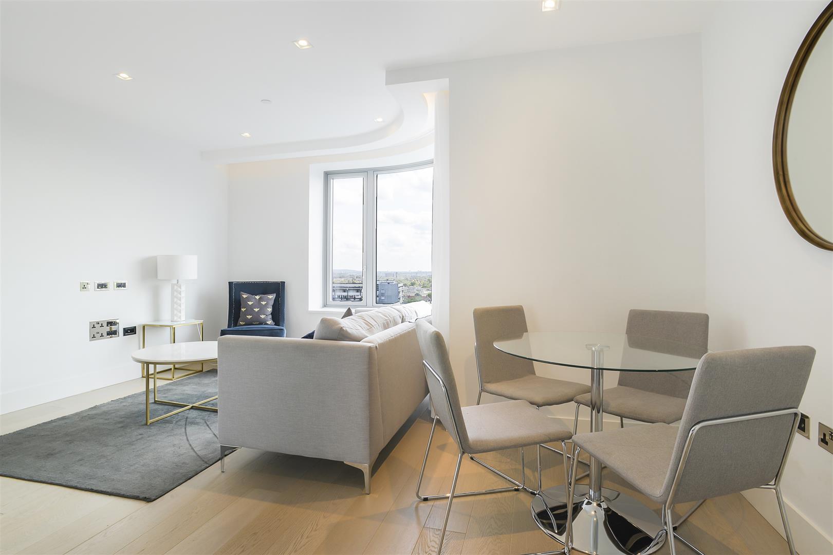 This luxurious apartment on the 10th floor of The Corniche, designed by the internationally acclaimed architectural practice, Foster and Partners, comprises of open plan kitchen reception room with Juliette balcony, bedroom with fitted cupboards and ensuite bathroom and entrance hall.