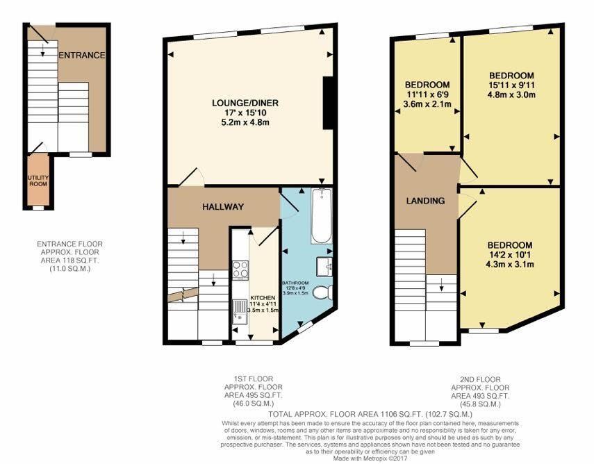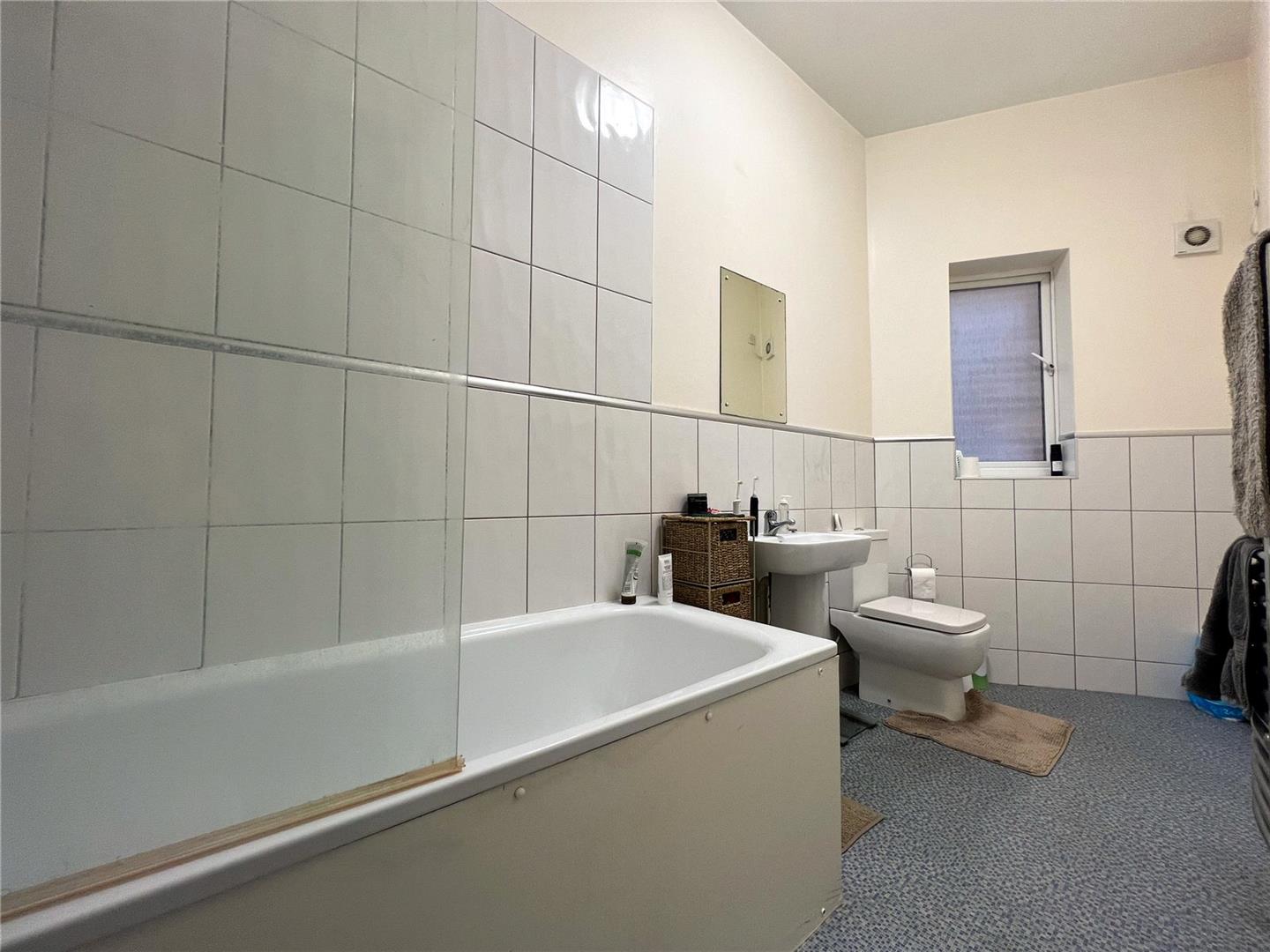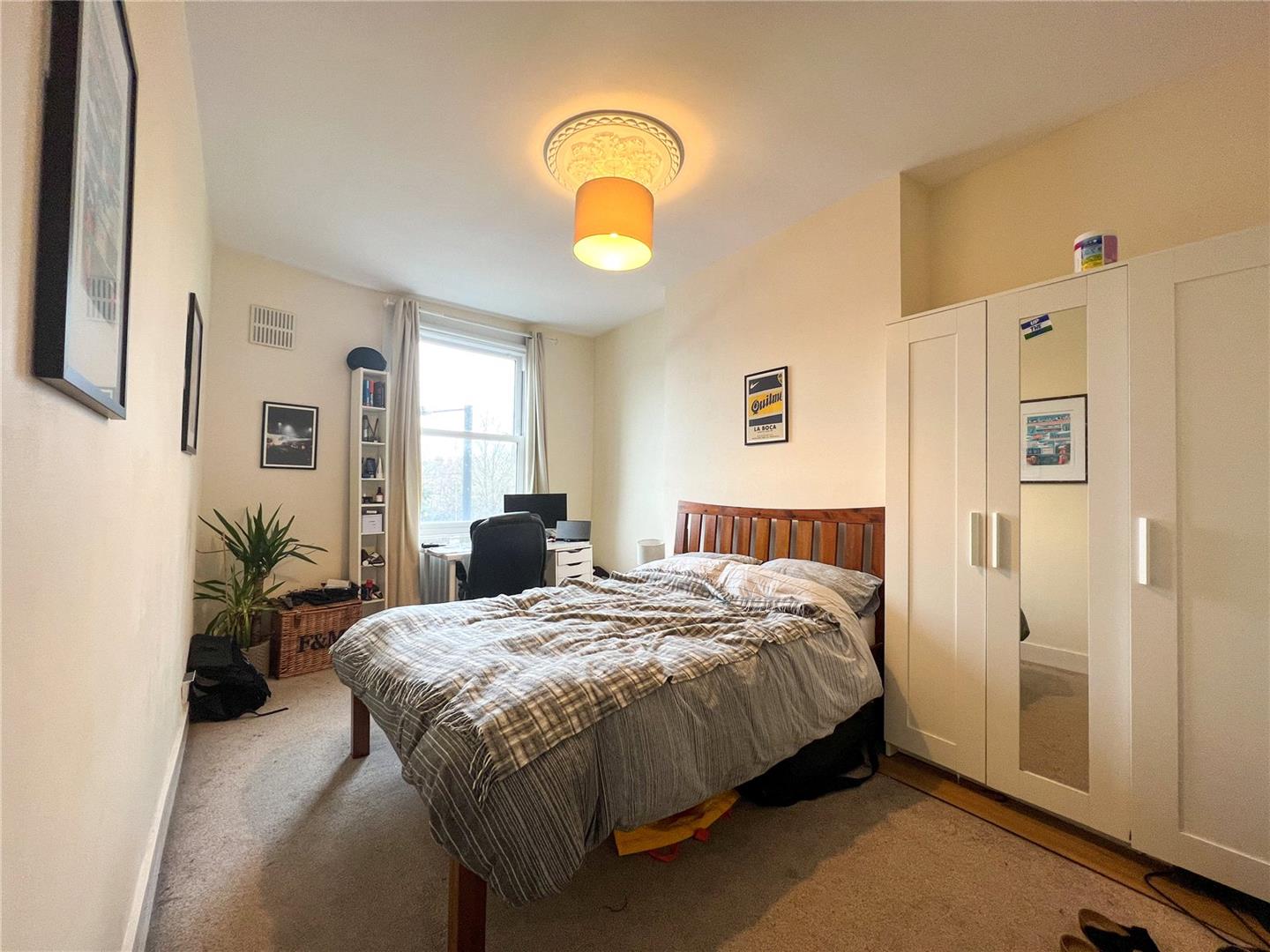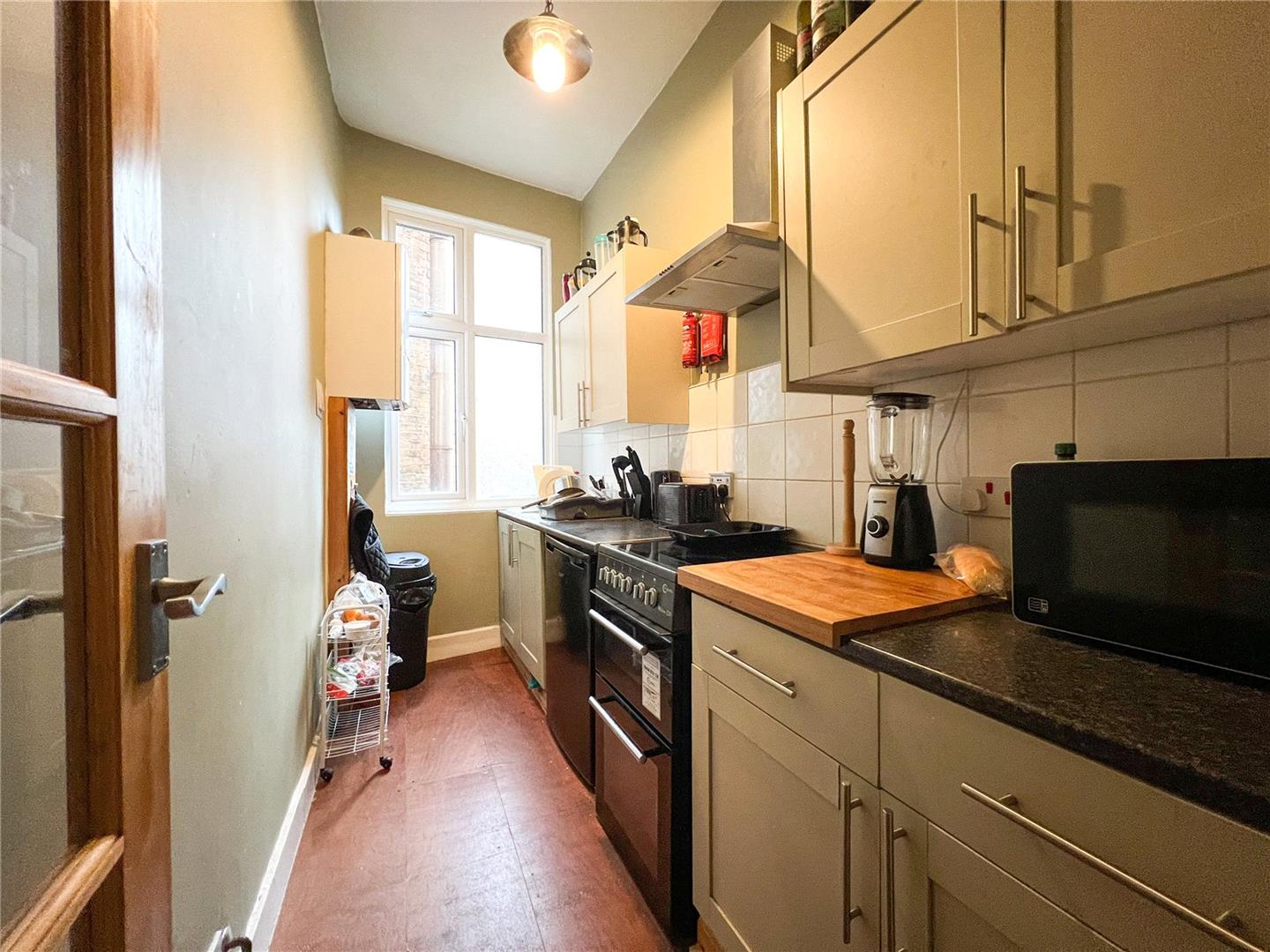 This spacious split level to floor flat has three equal sized bedrooms, a larger than average living area with really high ceilings a good size fitted kitchen and a three piece bathroom suite.